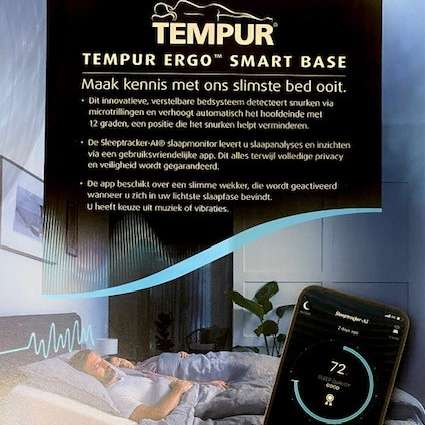 Maak kennis met ons slimste bed ooit – de TEMPUR Ergo™ Smart Base. Dit innovatieve, verstelbare bedsysteem detecteert microtrillingen van snurken.