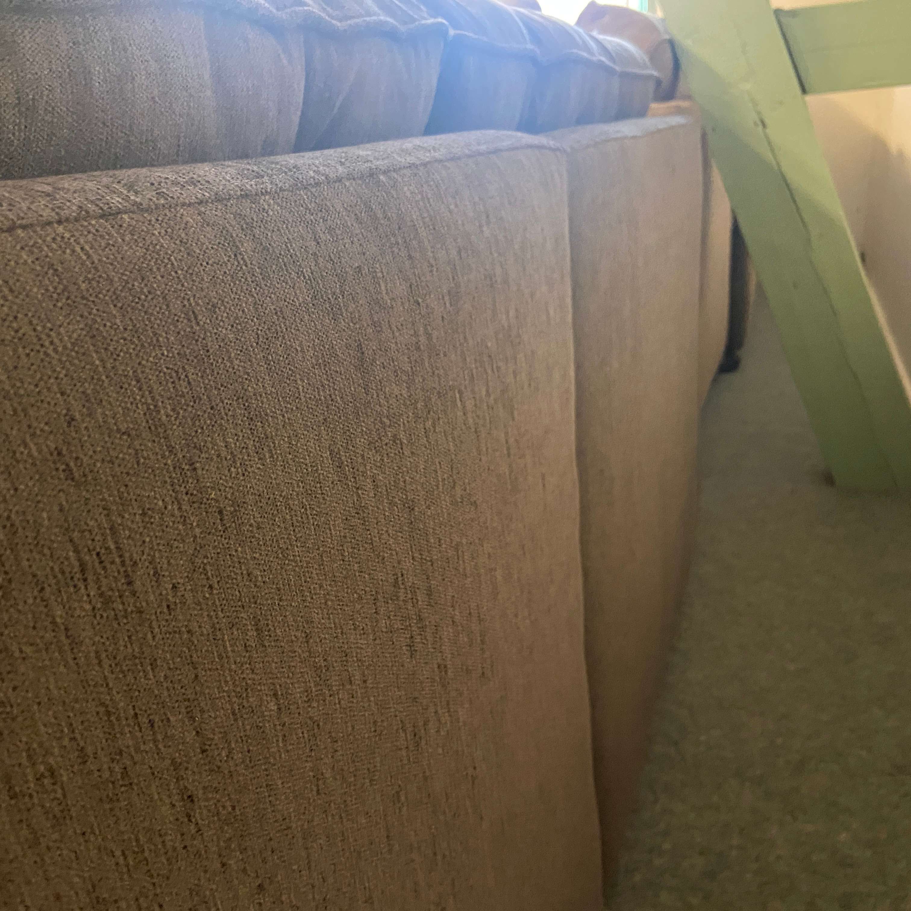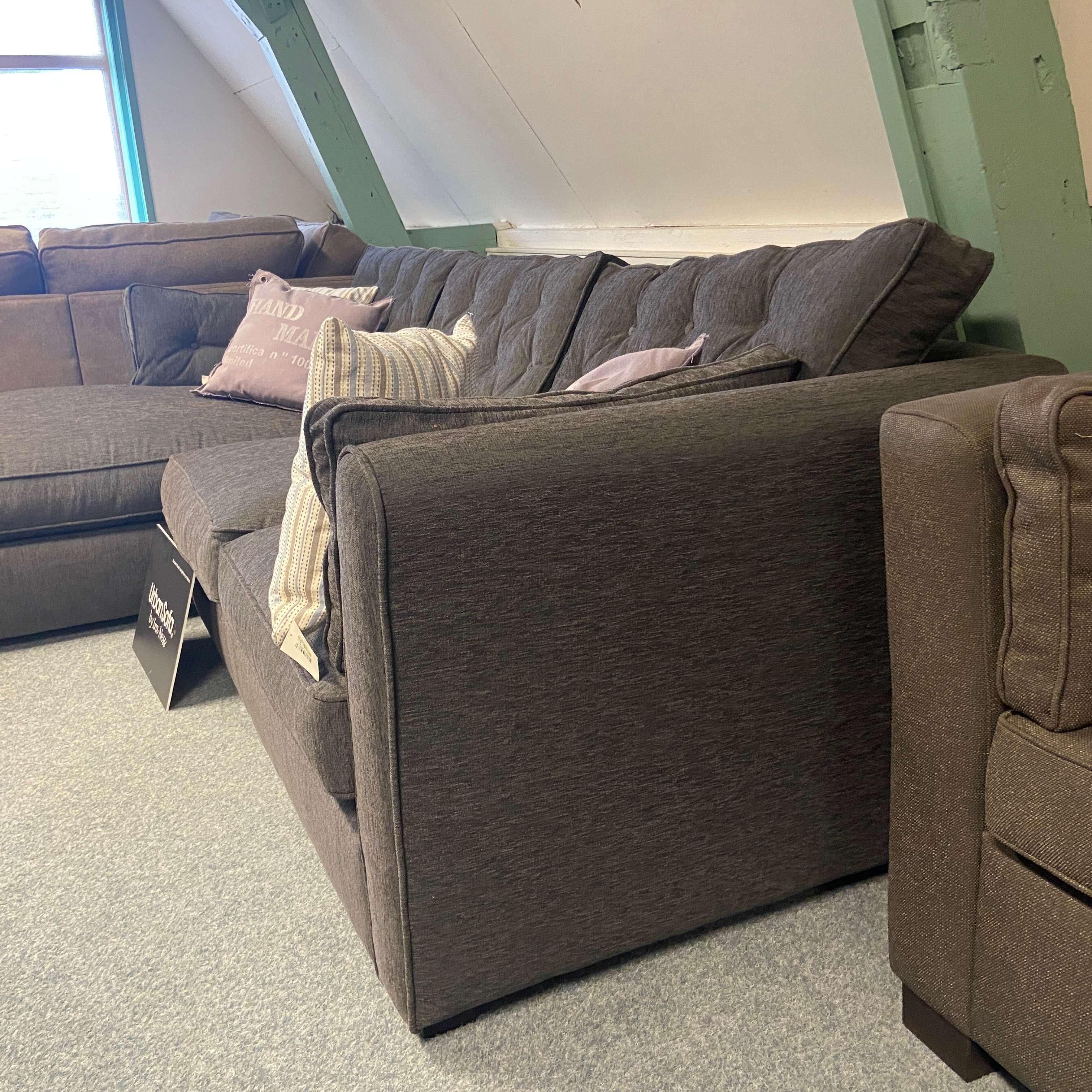 Heerlijk zittende longchair bank voor bij een landelijk, barok of klassiek interieur. Kleur is antraciet, net een ander stofje dan de 2 carrera fauteuls. Deze heeft geen vleug, maar is wel iets flueelachtig. Stof oogt gemeleerd.