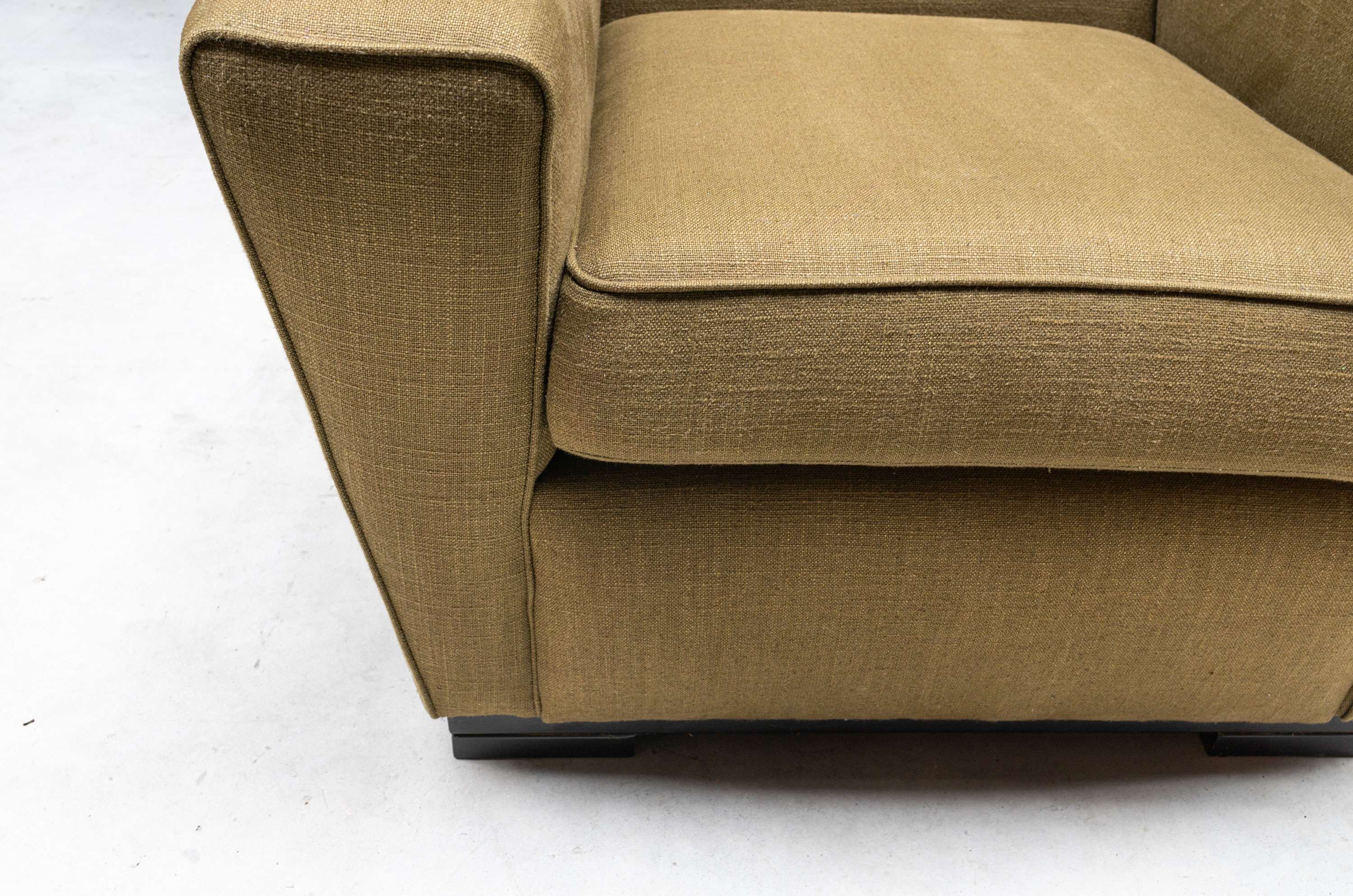 Deze stoel is bekleed met originele REYNALDO-stof, een erkende high-end stofontwerper/producent uit Frankrijk. REYNALDO staat bekend om hun onderscheidende ontwerpen en hoge kwaliteit.
