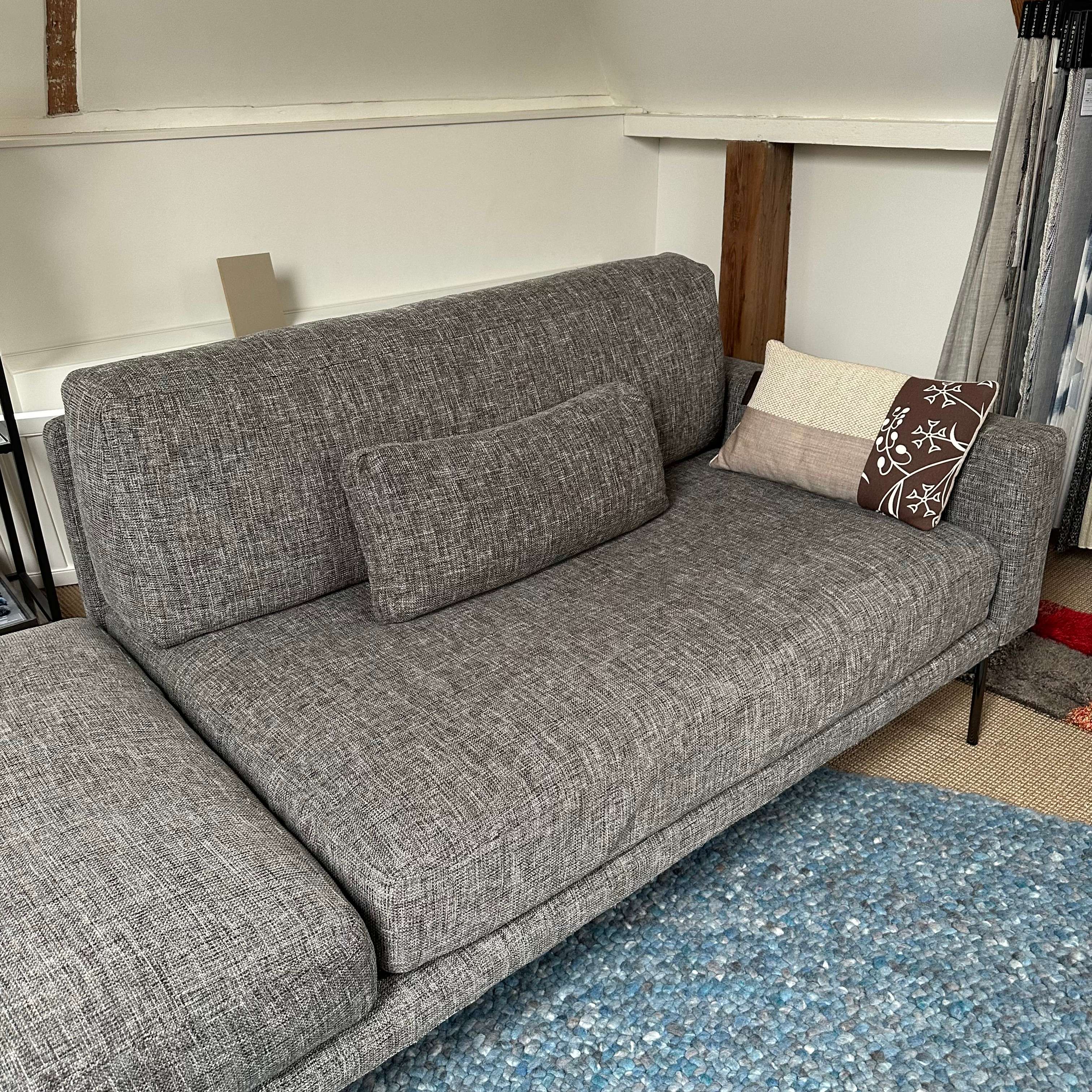 De Vibieffe modern sofa ademt verfijning. Het minimalistische silhouet, de subtiele lijnen en de asymmetrische rugleuning die slechts tot de helft van de bank loopt, maar dit ontwerp speelt en sculpturaal.