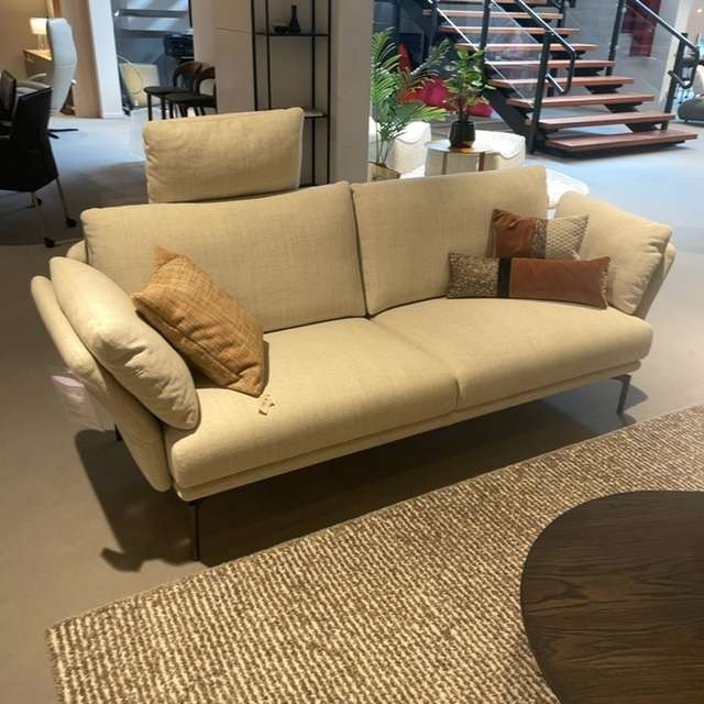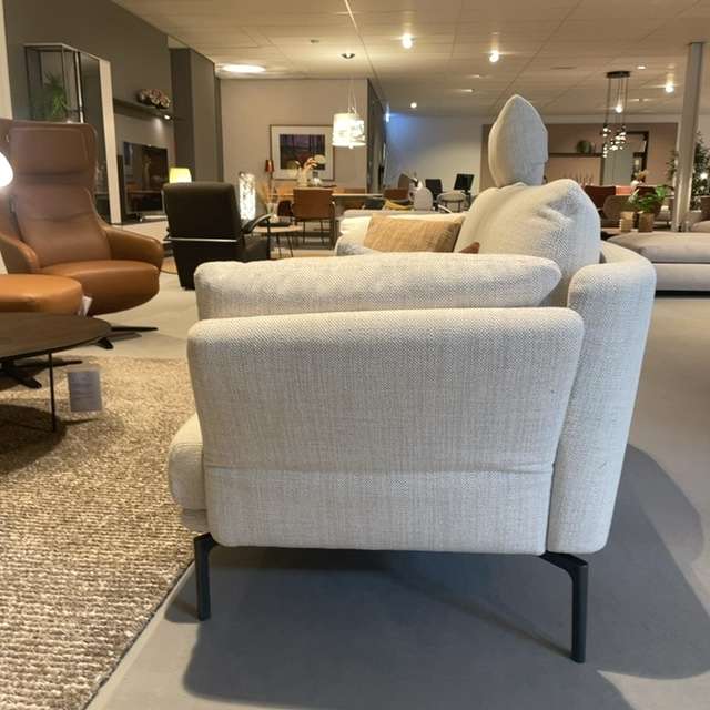 De bank is uitgevoerd in stof, Danio nature U3322D met poten in alu antraciet.