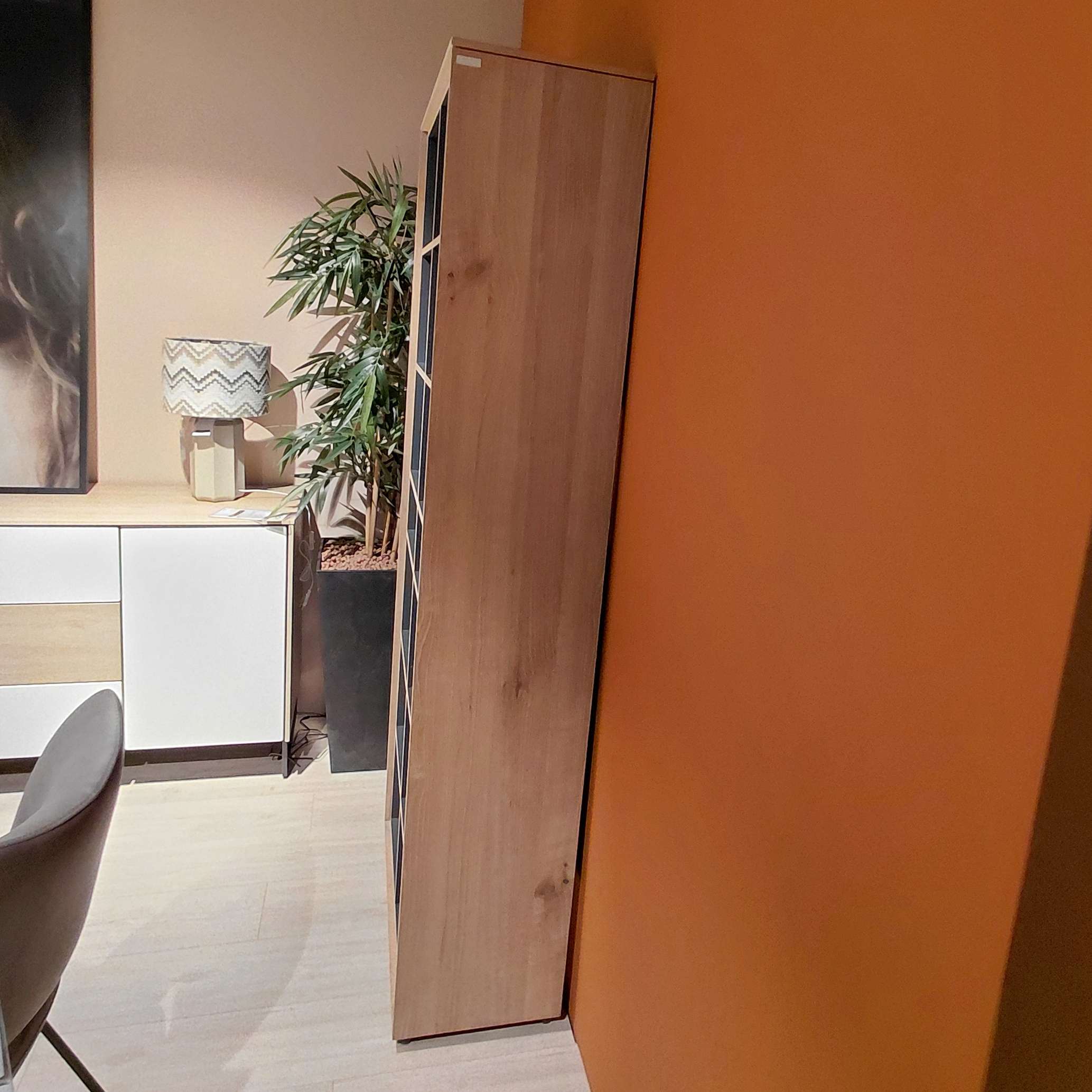 Boekenkast Darwin is een strakke kast die goed past in moderne en Scandinavische interieurstijlen, dankzij de combinatie van het lichte hout met het wit en de zwartmetalen poten.