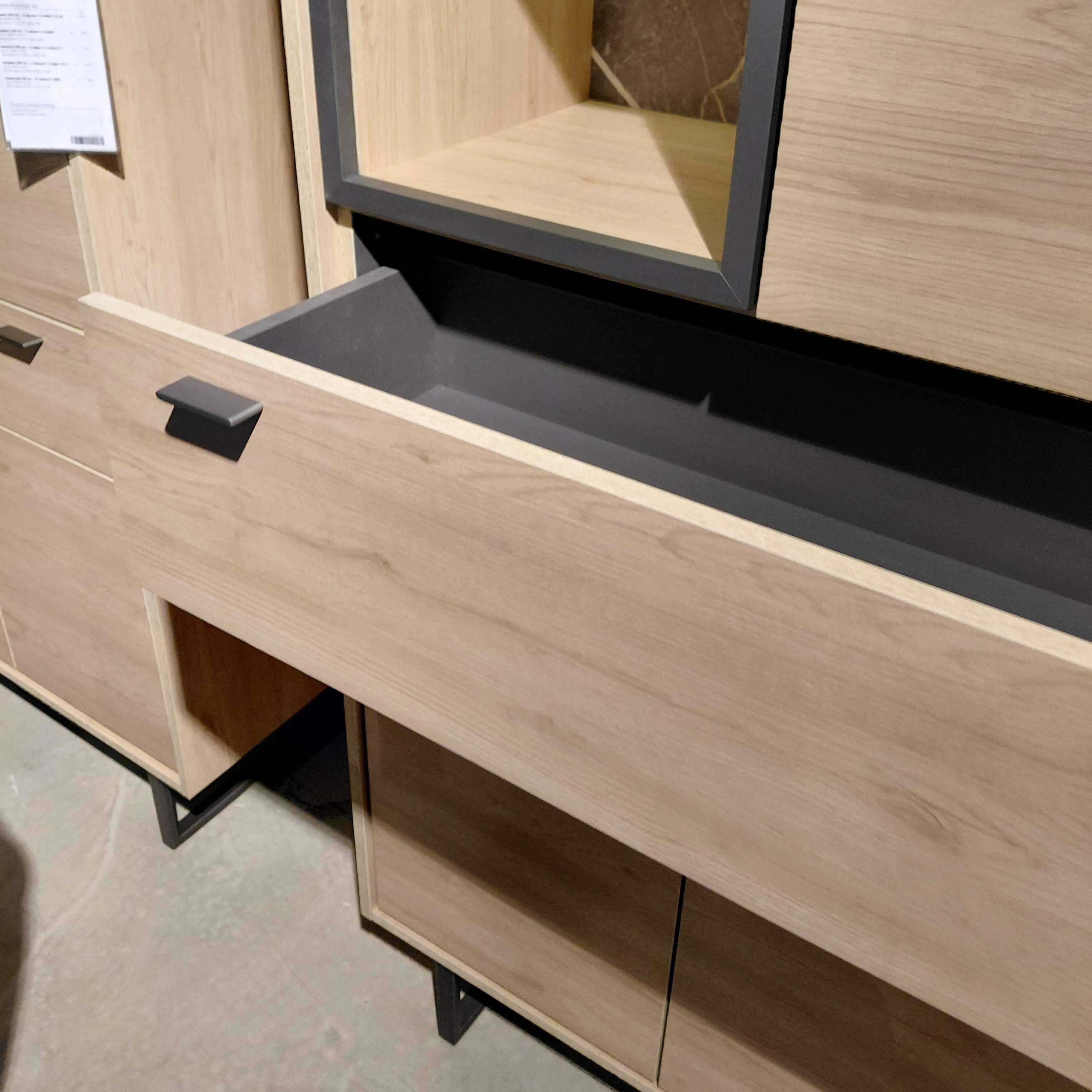 Met zijn 3 deuren, 1 lade en 2 niches biedt deze bergkast veel opbergruimte. HELSINKI is 195 cm hoog en 100 cm breed. Hij staat op een rank onderstel in grafietkleur.