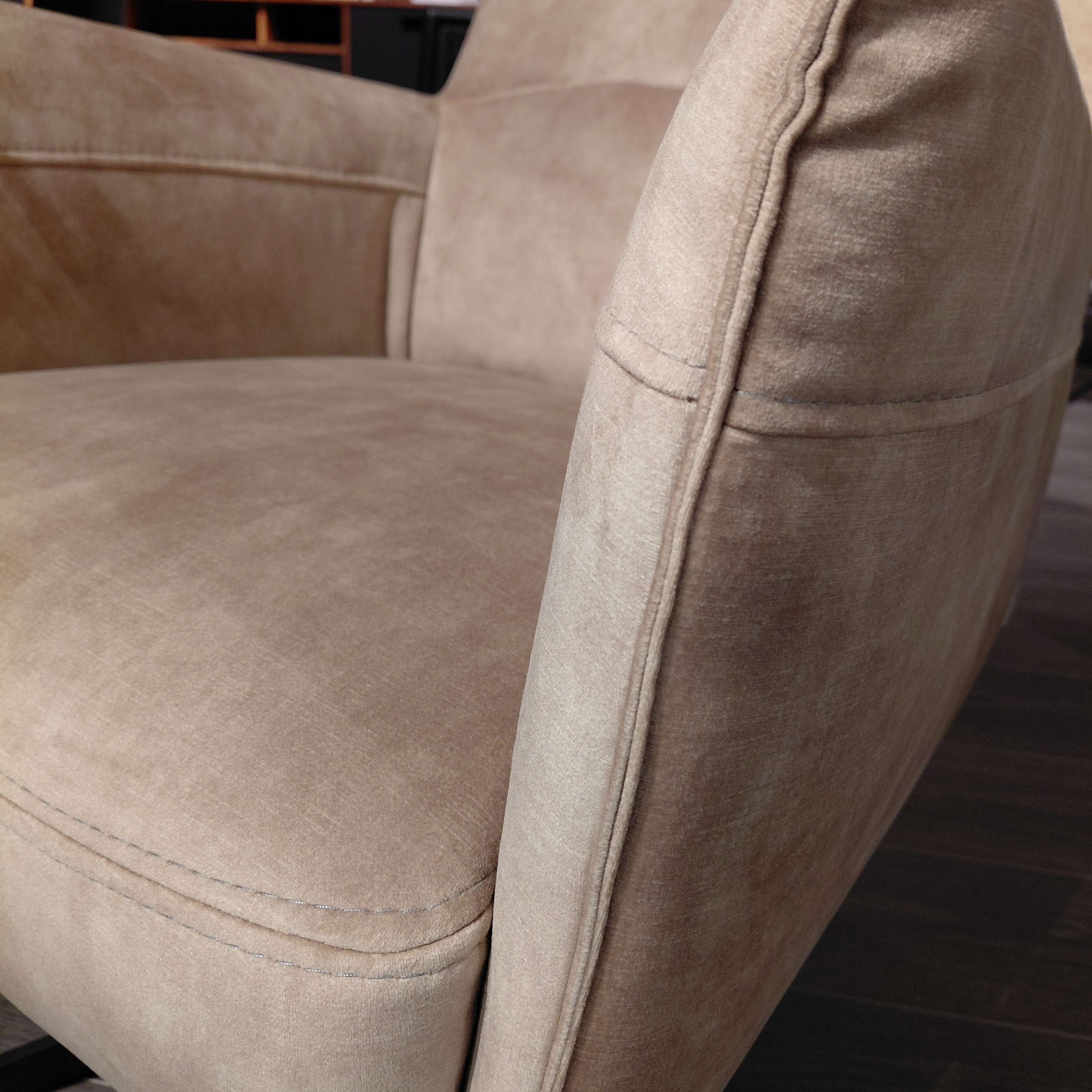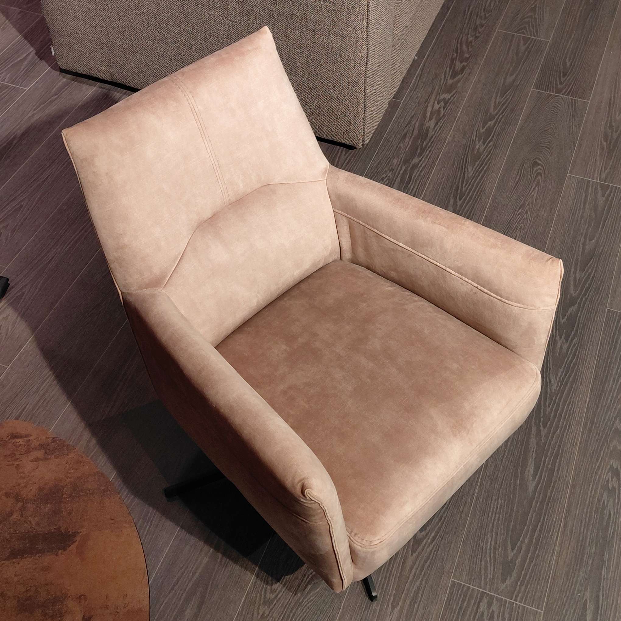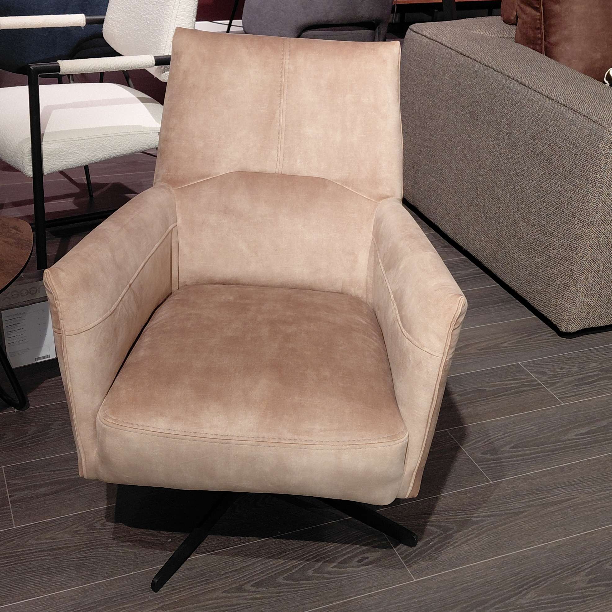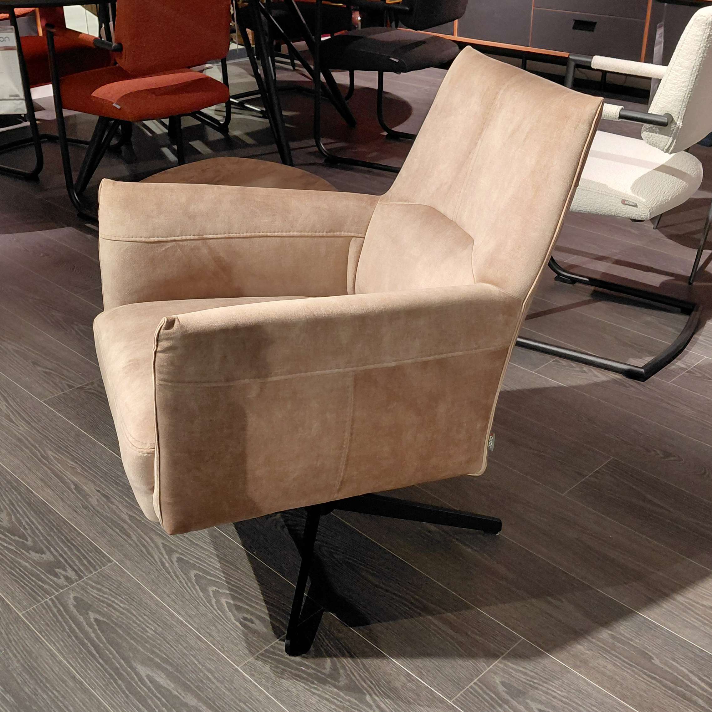 Matera fauteuil van Xooon. Een elegante stoel met een hoge rugleuning en een stoere zwarte metalen draaipoot.